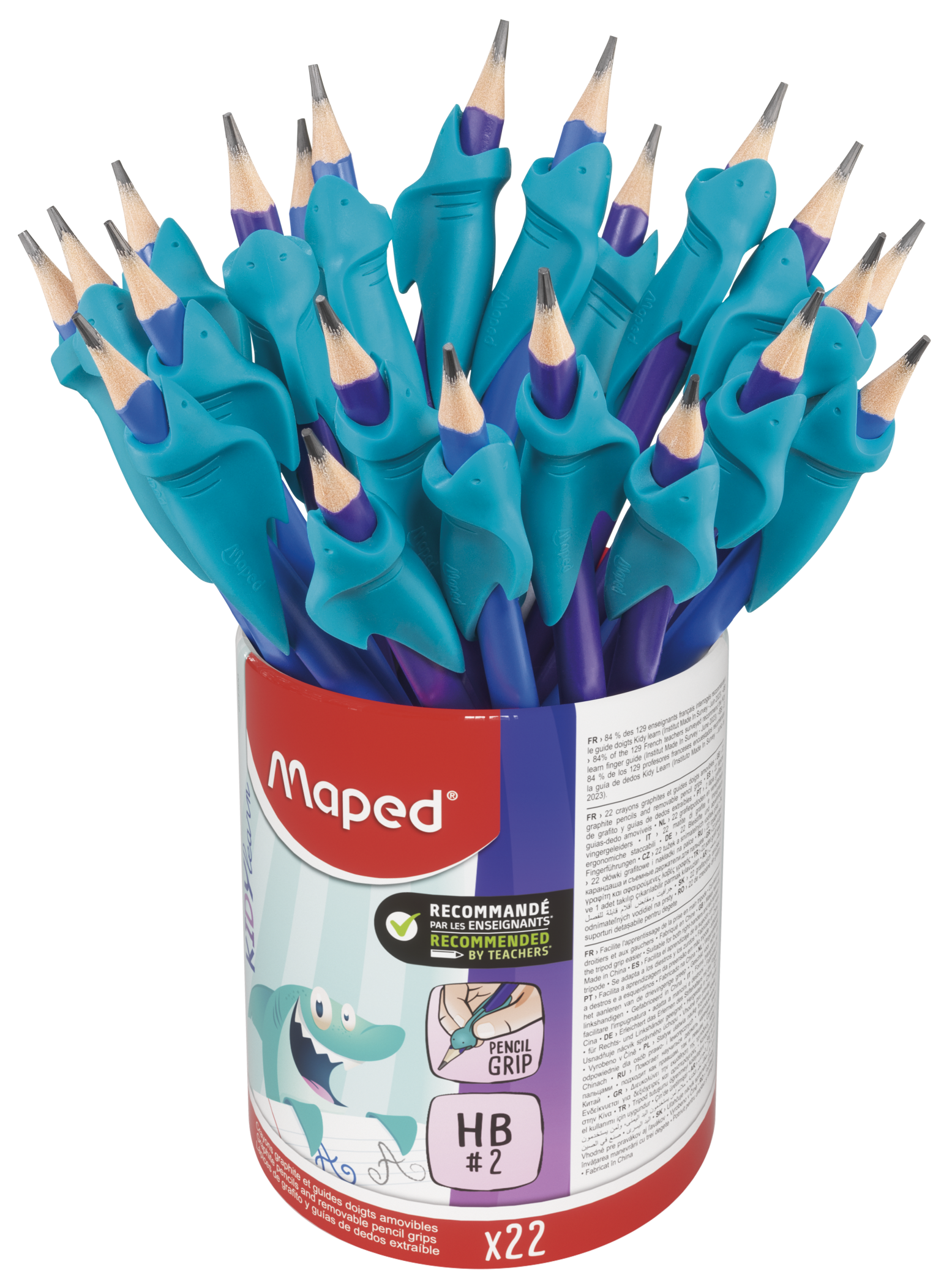 Насадка в виде акулы обеспечивает оптимальный захват корпуса карандаша и правильную постановку руки